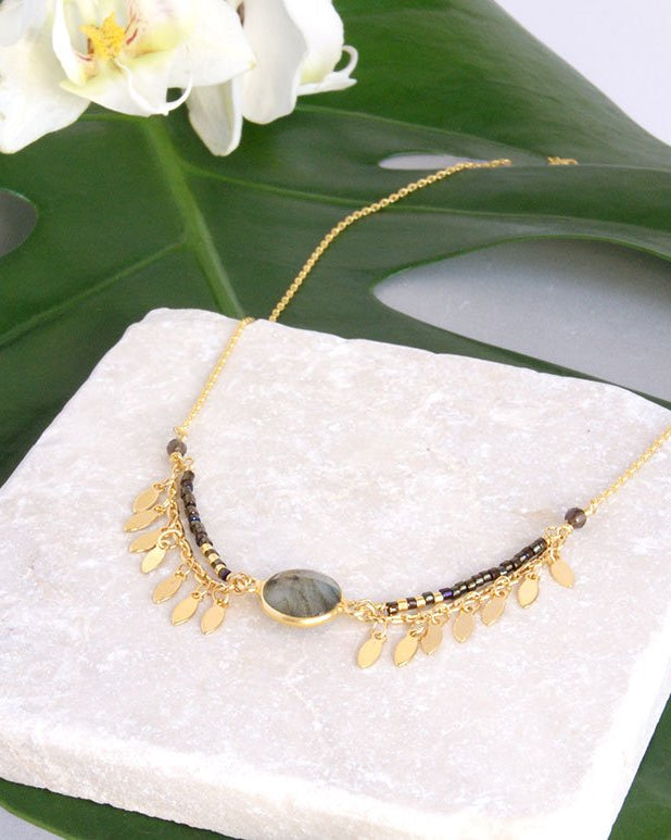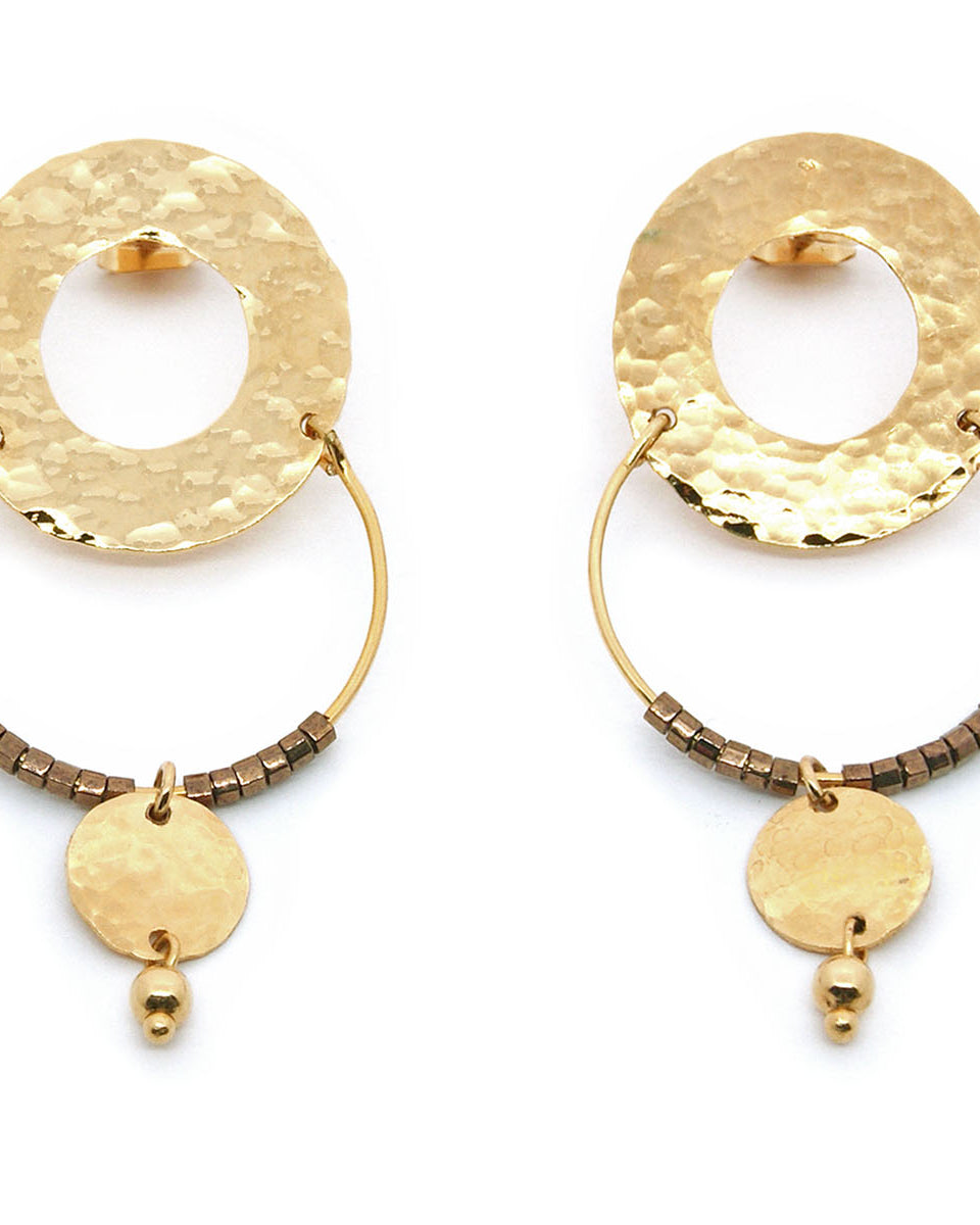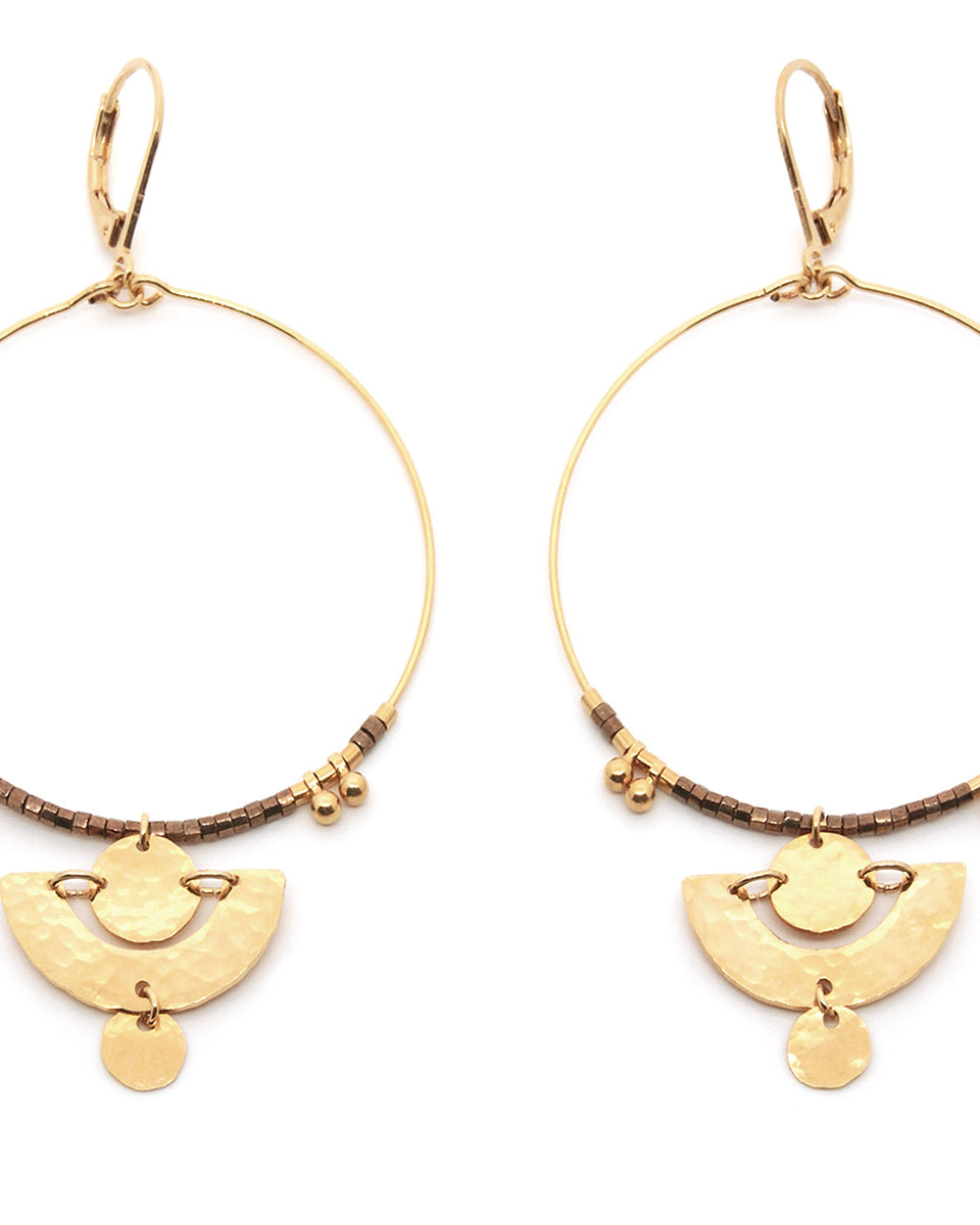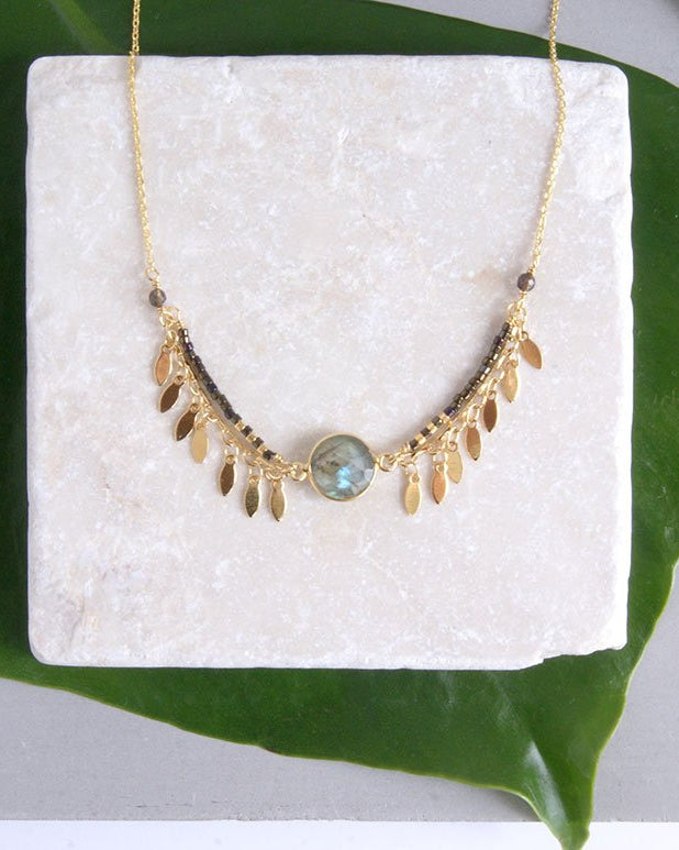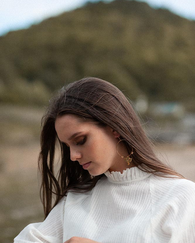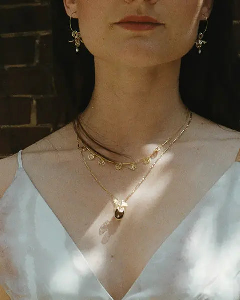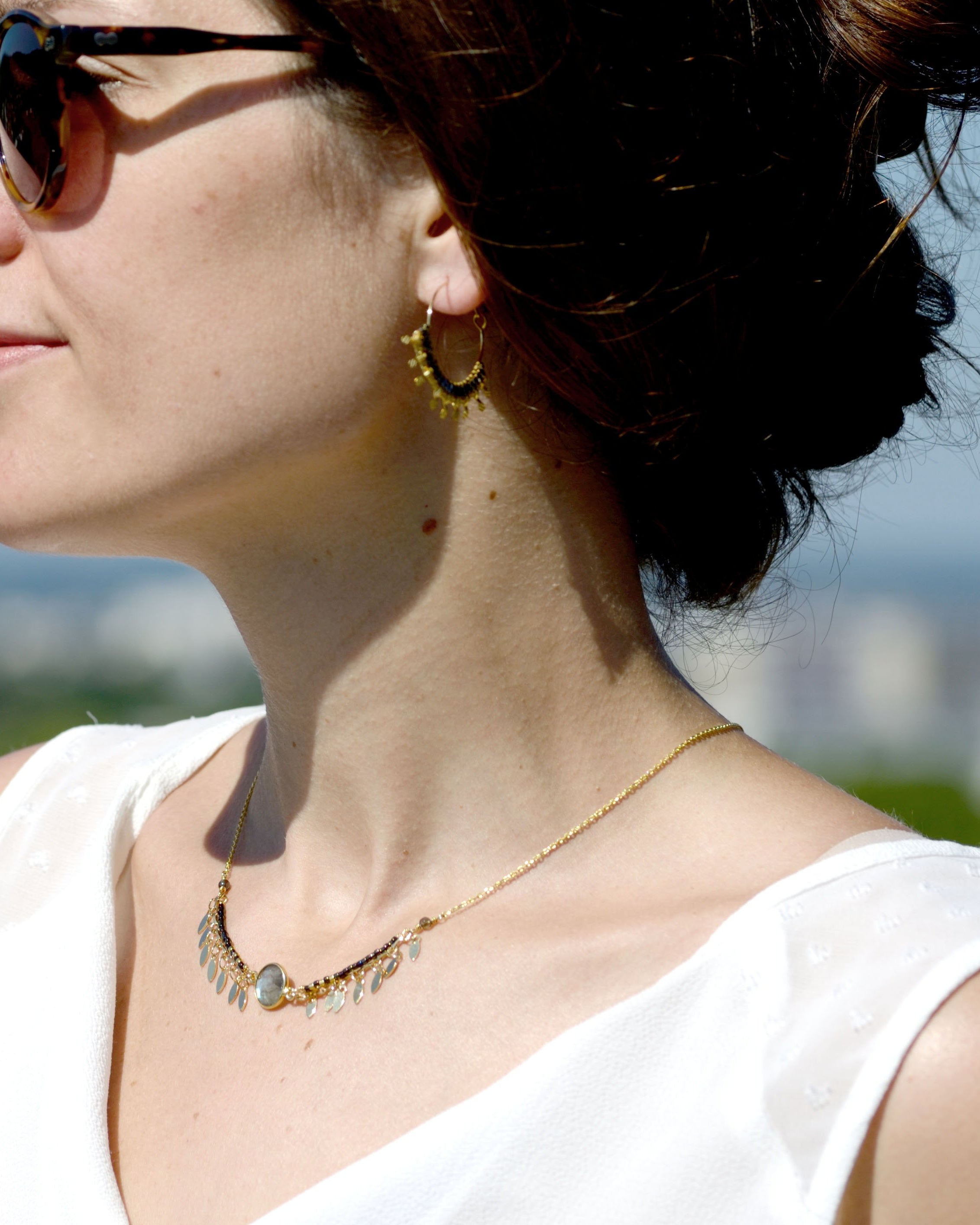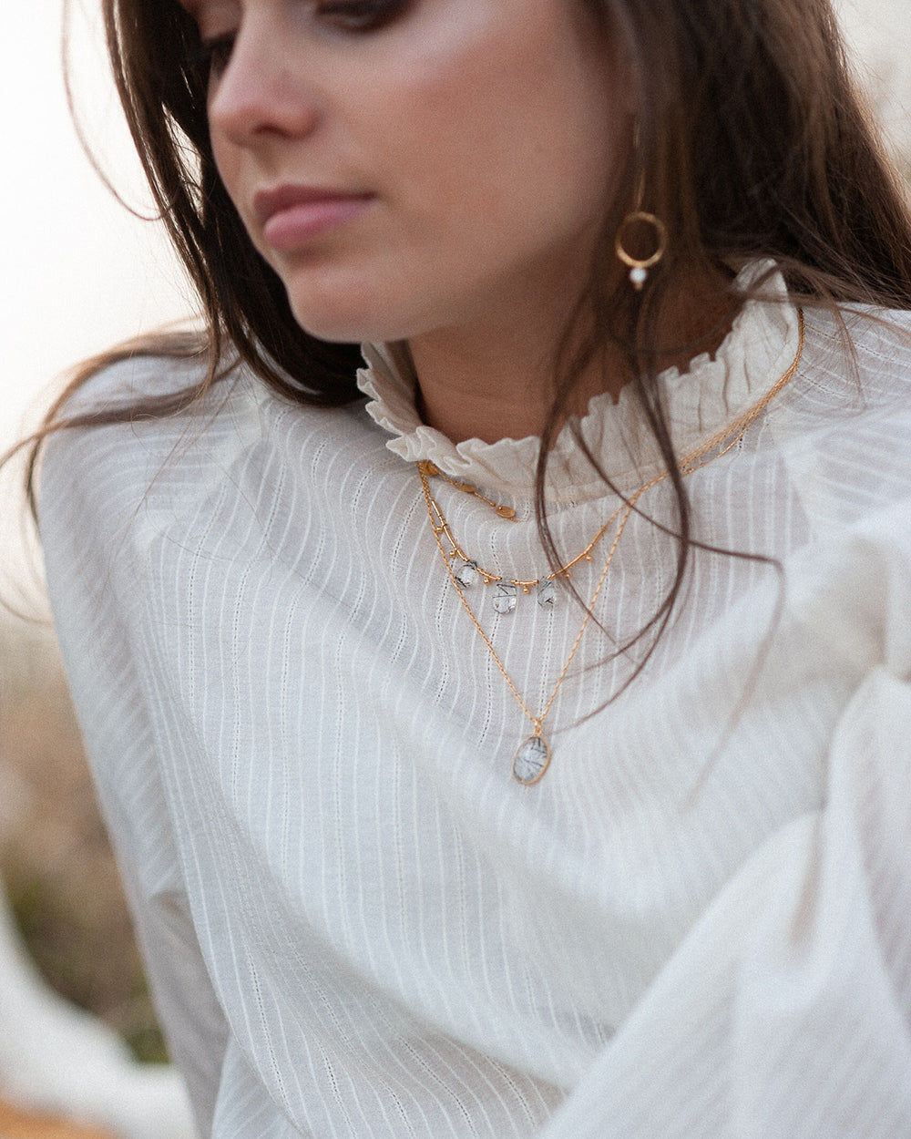 Nos colliers, bagues, boucles d'oreilles et bracelets sont en laiton dorés à l’or fin 24 carats avec une couche allant de 1 à 3 microns pour une tenue longue durée.