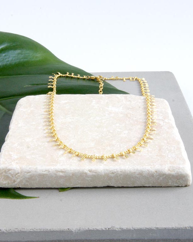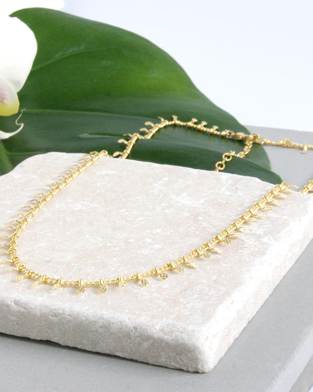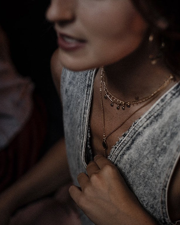 Nos colliers, bagues, boucles d'oreilles et bracelets sont en laiton dorés à l’or fin 24 carats avec une couche allant de 1 à 3 microns pour une tenue longue durée.