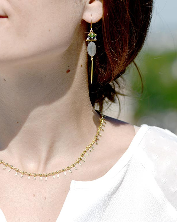 Nous travaillons avec des pierres fines semi-précieuses et des perles d'eau douce pour une touche authentique.