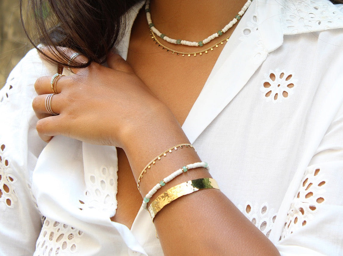 Chaque bijou doit être manipulé avec soin pour préserver la beauté des matières utilisées.