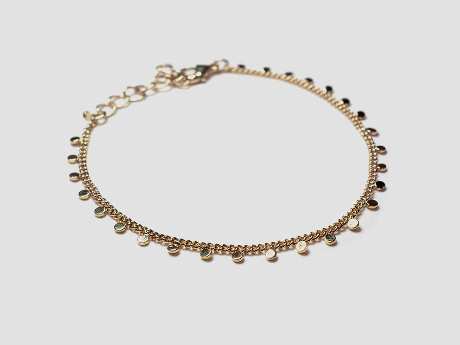 Bracelet SHANKA, une chaine fine et délicate décoré de petites boules dorées.