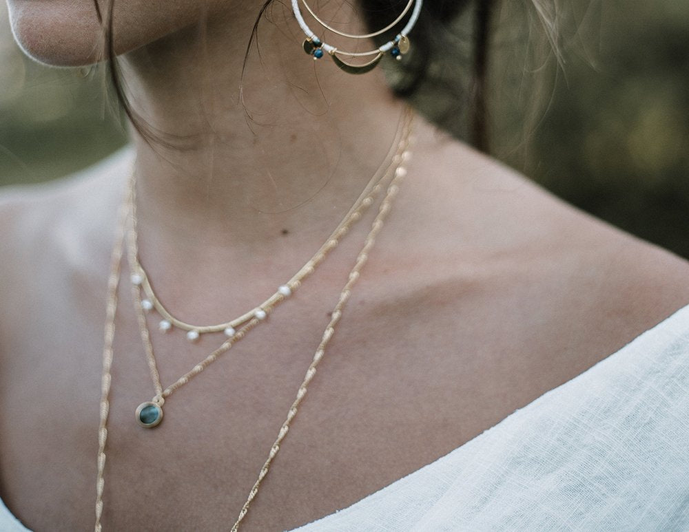 Chaque bijou doit être manipulé avec soin pour préserver la beauté des matières utilisées.