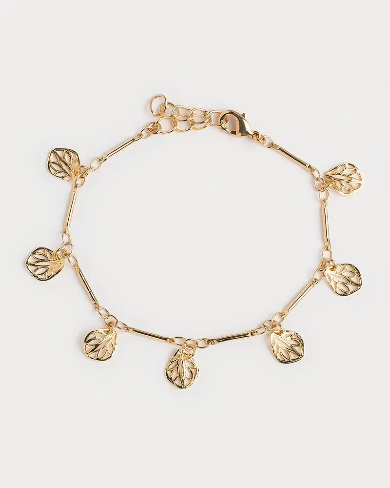 Découvrez le magnifique bracelet ARUN dorée, orné de délicates feuilles en breloques. Une touche de nature et d'élégance à porter au quotidien. Fabriqué avec soin, ce bracelet est un accessoire polyvalent qui convient à toutes les occasions. Ajoutez une pièce unique à votre collection de bijoux dès maintenant et laissez-vous séduire par son charme intemporel.