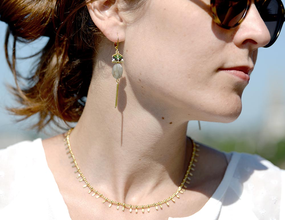 Chaque bijou doit être manipulé avec soin pour préserver la beauté des matières utilisées.