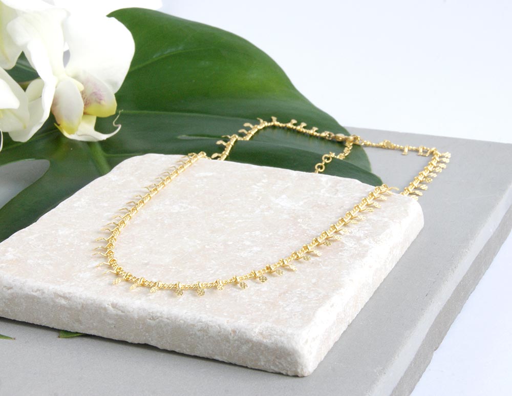 Collier chaine fantaisie Ina, une touche bohème chic qui apportera fraicheur et originalité a vos looks. Un de vos bijoux préféré, également disponible en bracelet.
