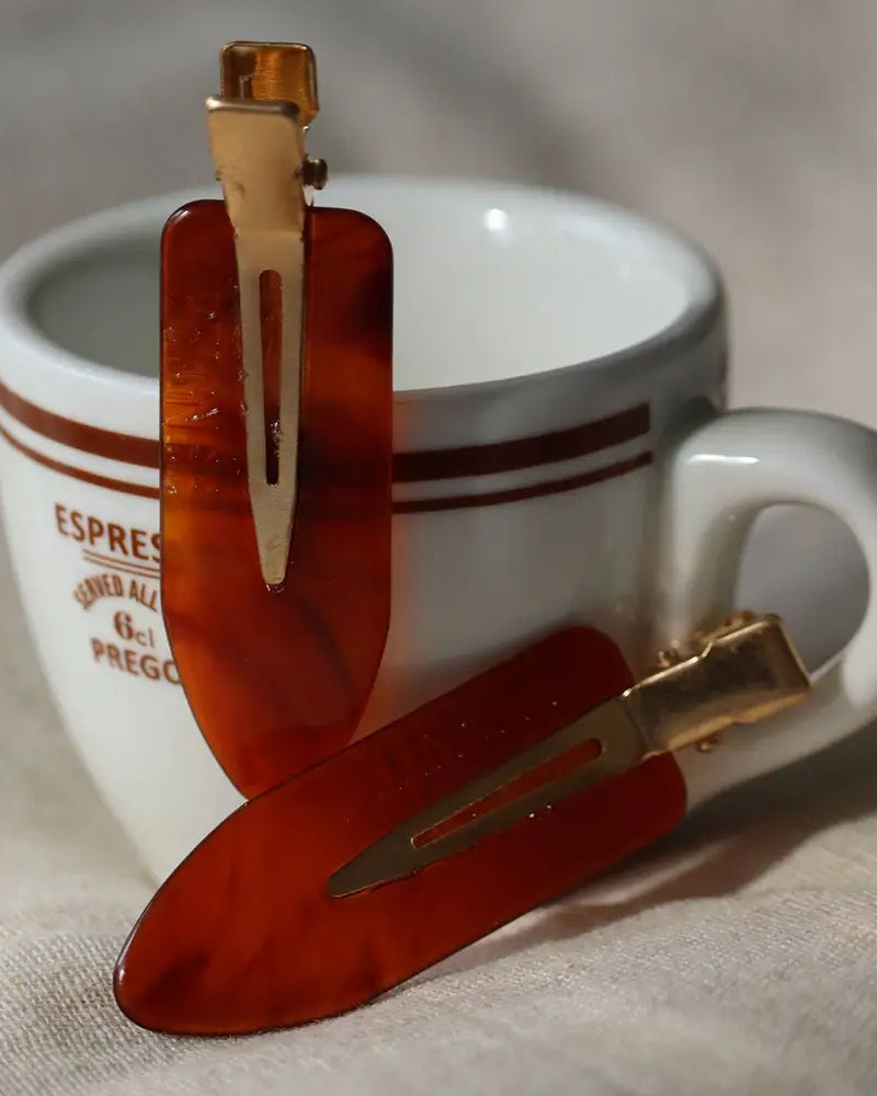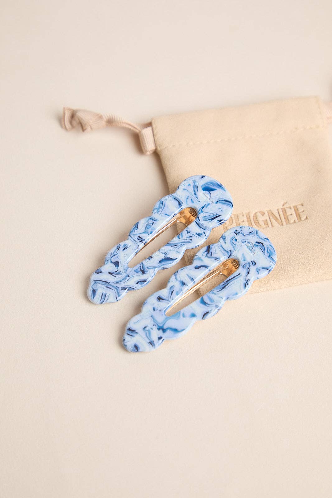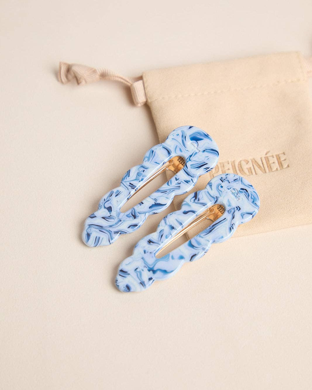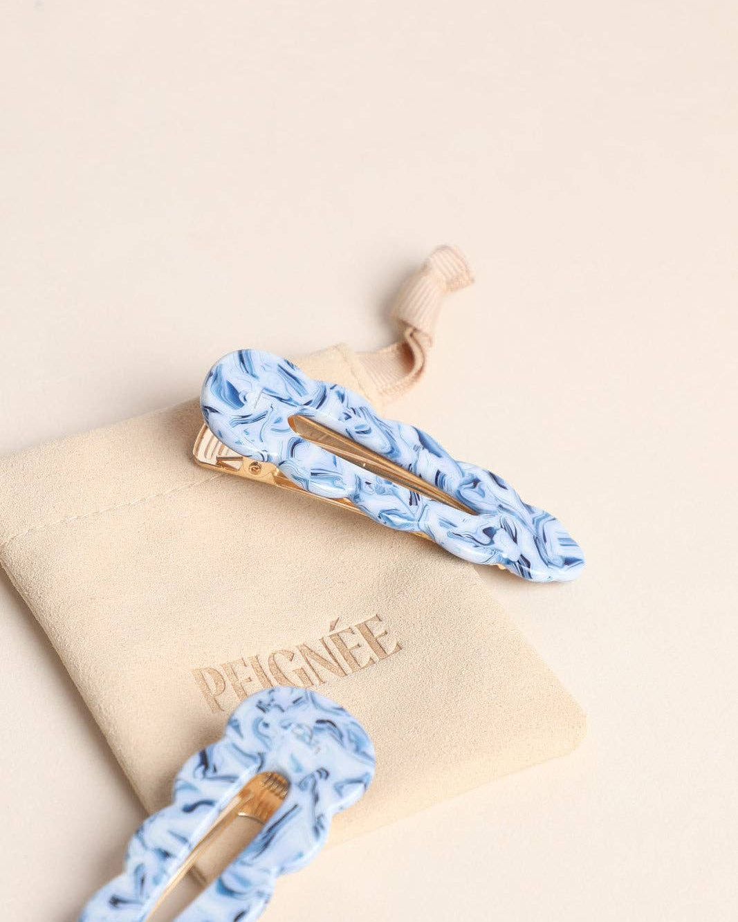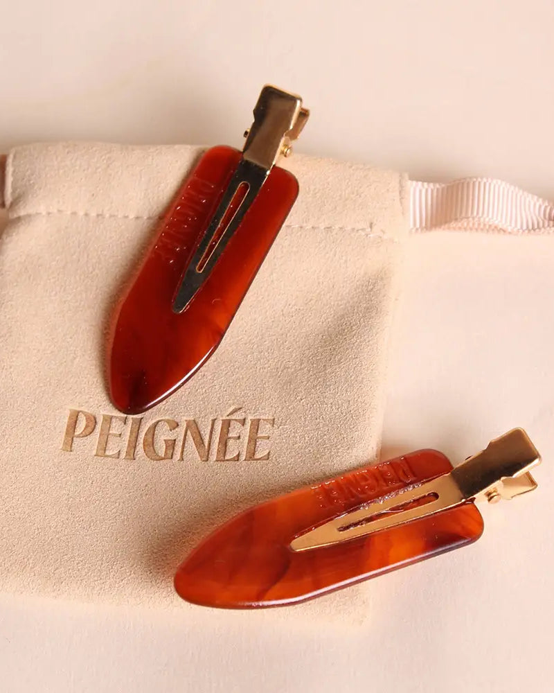 Les barrettes Peignée se distinguent par leur design ondulé, emblématique, et leur pince dorée au maintien impeccable.