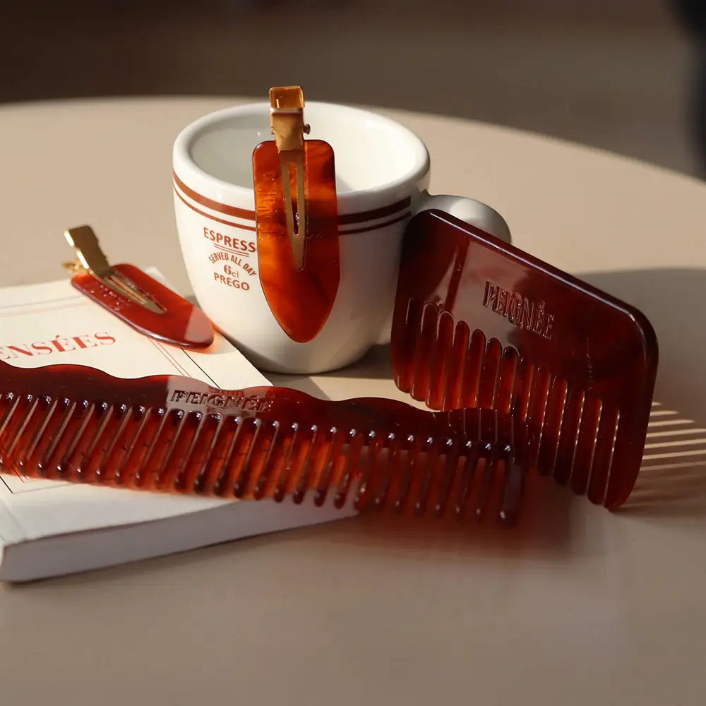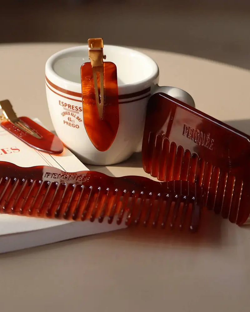 Chaque barrette et chaque peigne est travaillé avec une exigence particulière : une épaisseur pensée pour la durabilité, une finition polie à la main pour une douceur parfaite au contact des cheveux.