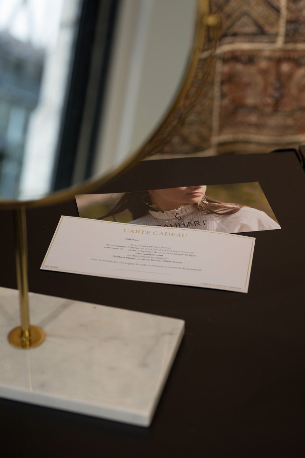 -une fois le bijoux ajouté à son panier, il lui suffira de rentrer le code de la carte cadeaux au moment du paiement.